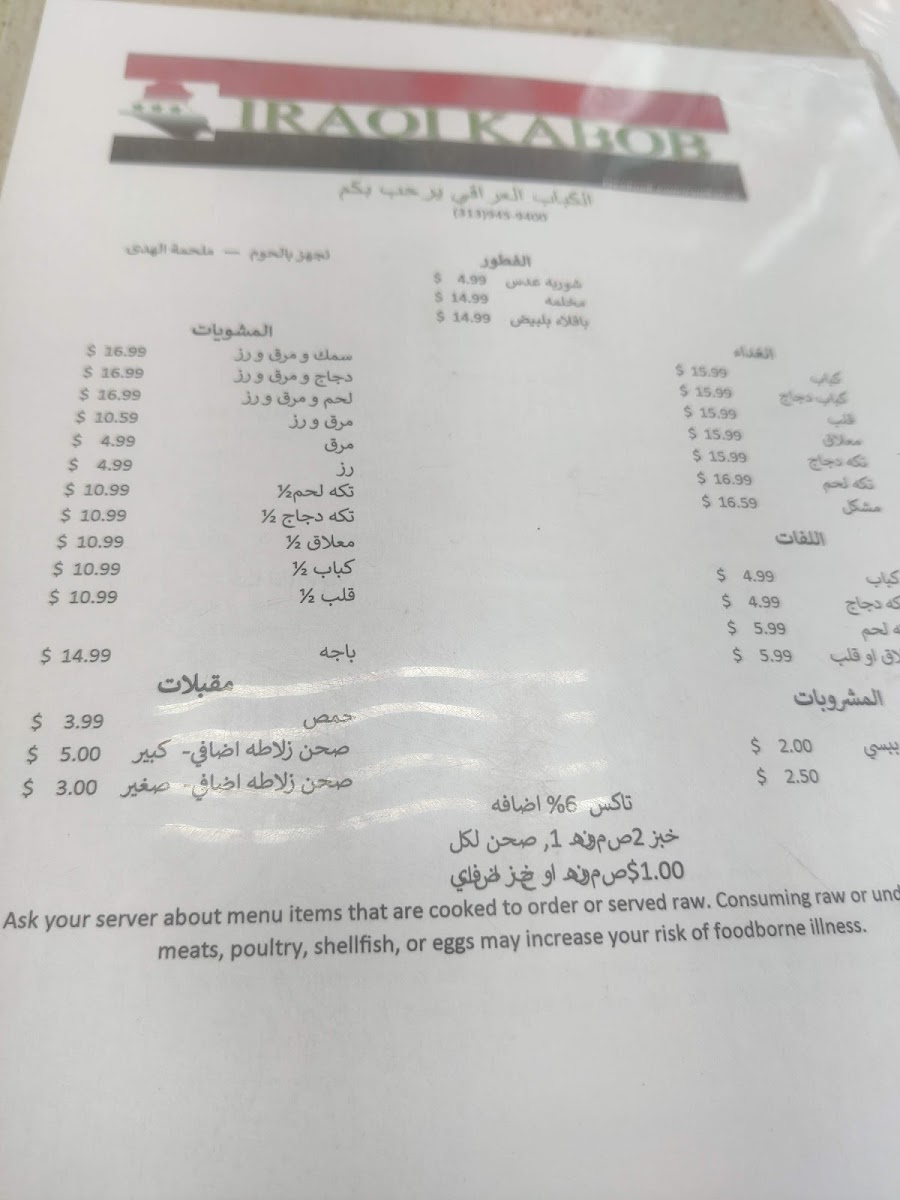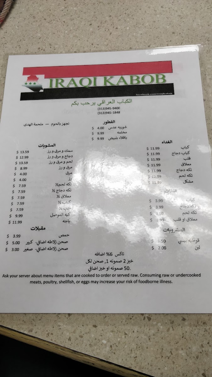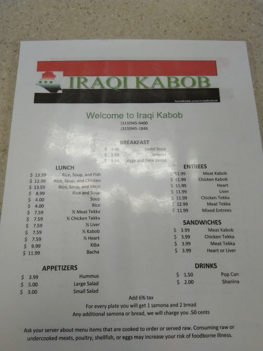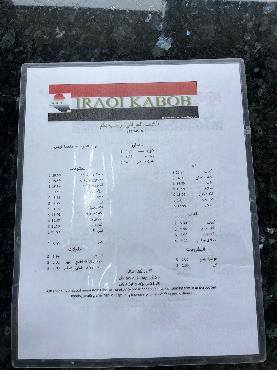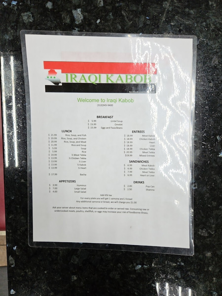 Welcome to Iraqi Kabob, where authentic Middle Eastern flavors meet exceptional service right in Dearborn, MI. Nestled at 13650 W Warren Ave, this hidden gem is celebrated for its incredible kabobs and Tikka.
